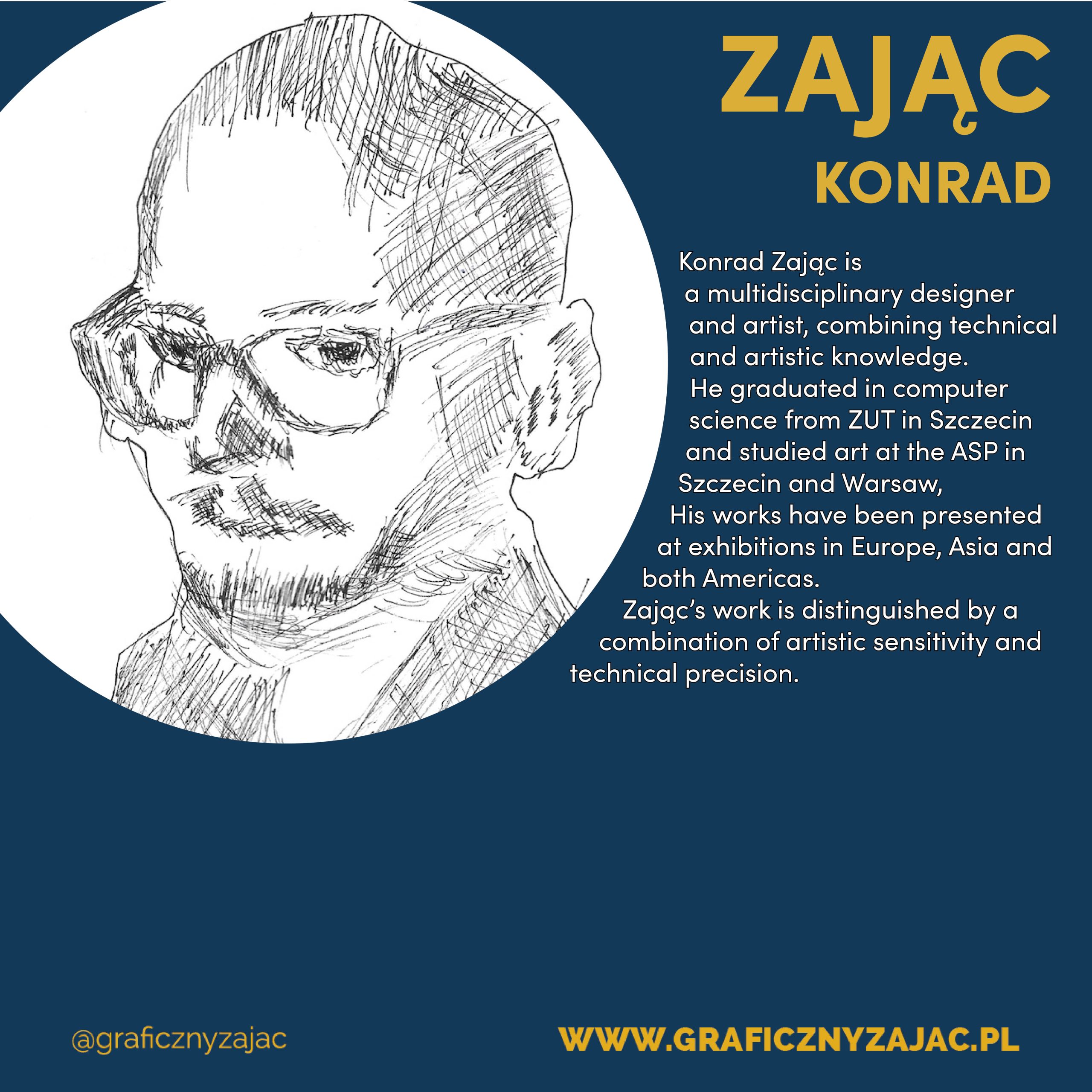 Konrad Zając is a multidisciplinary designer and artist, combining technical and artistic knowledge. He graduated in computer science from ZUT in Szczecin and studied art at the ASP Warsaw and in Szczecin. His works have been presented at exhibitions in Europe, Asia and both Americas. Zając’s work is distinguished by a combination of artistic sensitivity